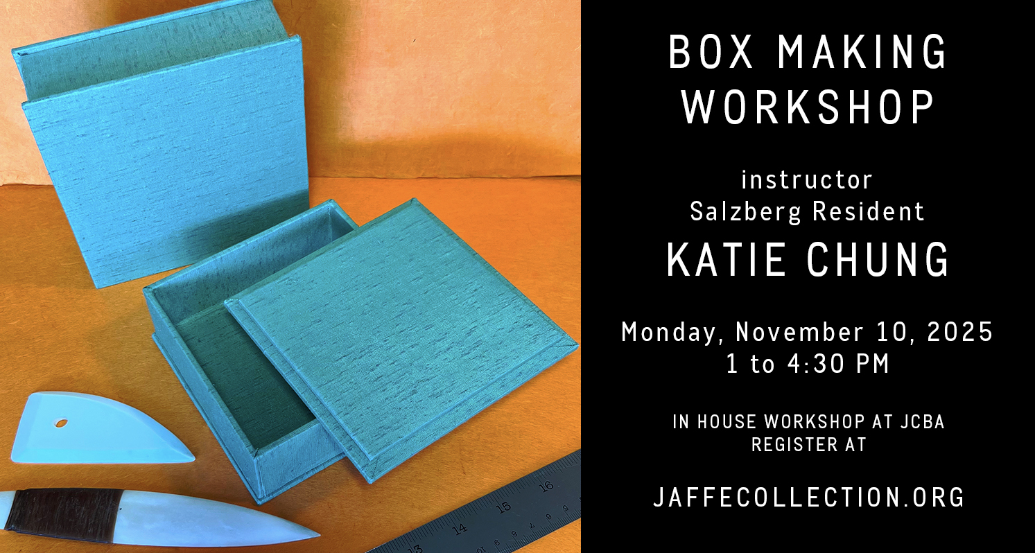 Archival boxes are used to hold precious objects such as books, prints, and artifacts. Learn how to build an archival lidded box in this one-day intensive workshop led by JCBA Salzberg Resident artist Katie Chung. Students will leave this workshop with a beautifully crafted box and the fundamentals of constructing a box using traditional book arts techniques. Prior book making experience is strongly encouraged. Materials and supplies will be provided.